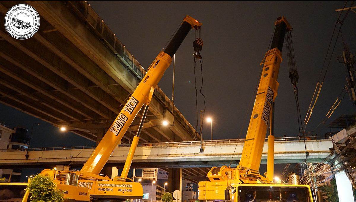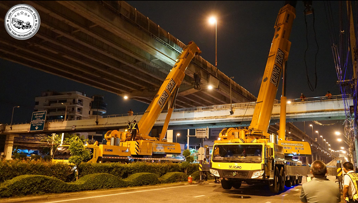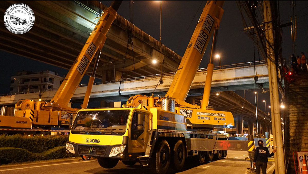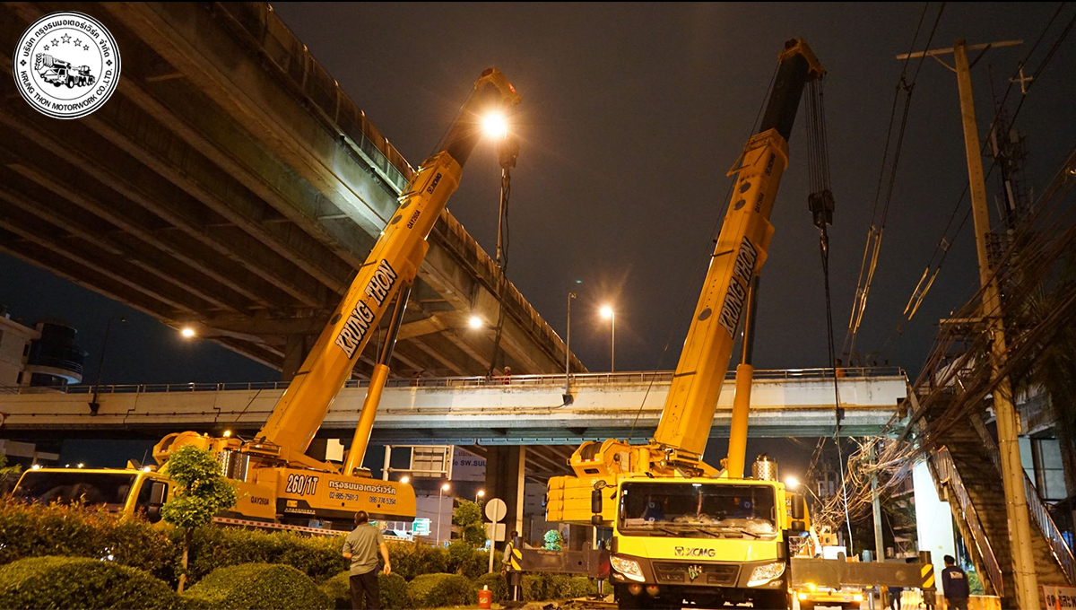 กรุงธนมอเตอร์เวิร์ค ขนรถยกกับเครนชุดใหญ่กับการยกติดตั้งสะพานลอยบนถนนบรมมราชชนนีในค่ำคืนที่ผ่านมา เรามีทีมงานมืออาชีพ เรามีวิศวกรควบคุม เราพร้อมที่จะบริการทุกท่าน นึกถึงเครนขนาด25-260ตัน นึกถึงเรา #กรุงธนมอเตอร์เวิร์ค #ยกสพานลอย #ถนนบรมมราชชนนี